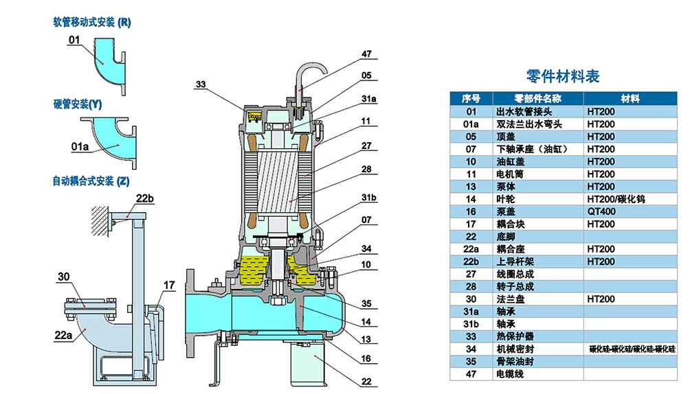 用于废水、污水、雨水等抽排,能对污水中含有的较大块状固态物、纤维类杂物切断后排出。